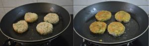 Heat oil in a pan and shallow fry the cutlets until golden brown on both sides.You can even deep fry if you want.
